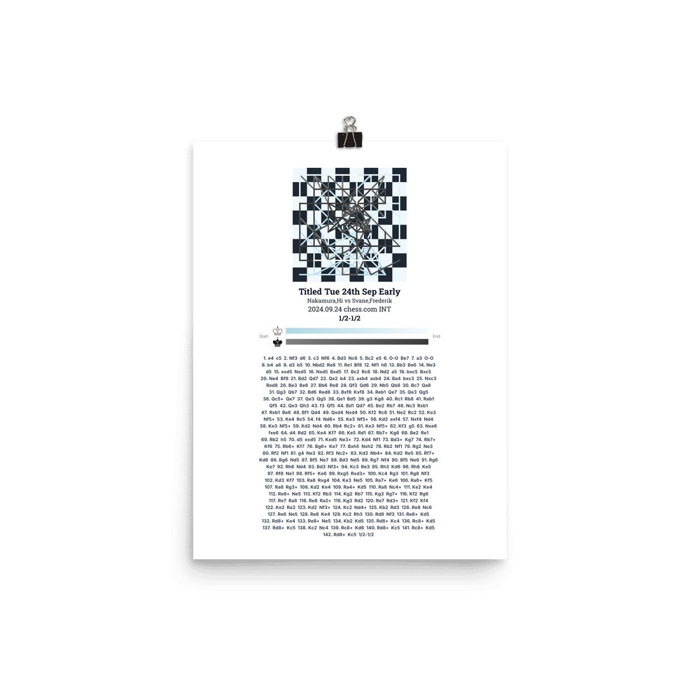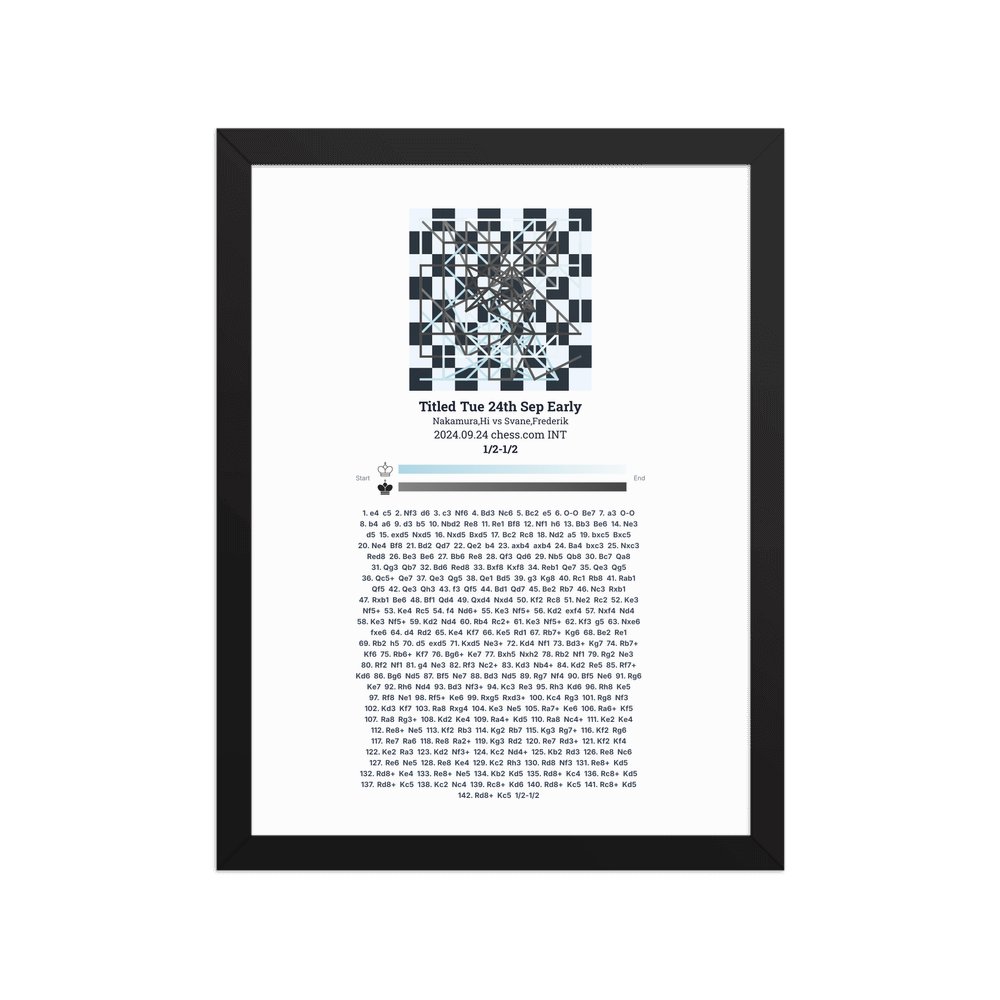 Museum-quality poster on thick, durable matte paper. A sharp, clean look for any chess visualisation.