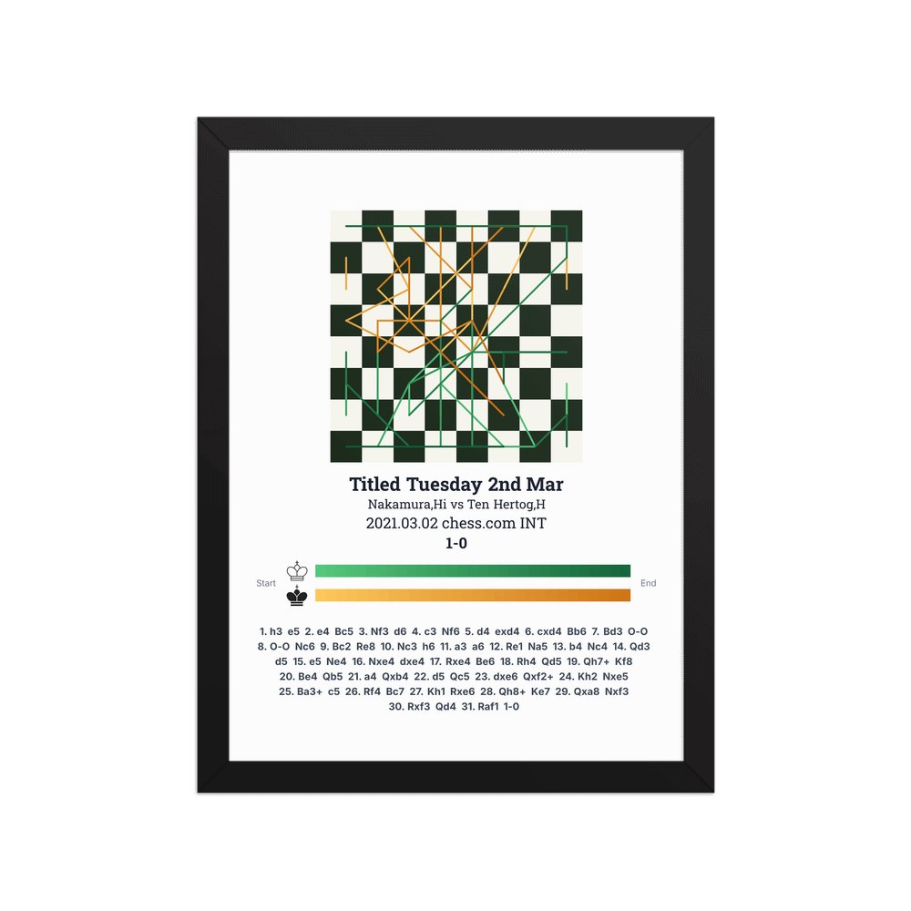 Museum-quality poster on thick, durable matte paper. A sharp, clean look for any chess visualisation.