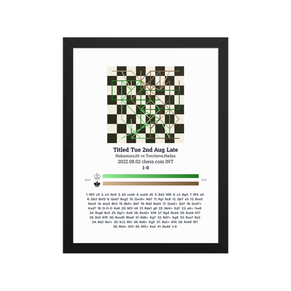 Museum-quality poster on thick, durable matte paper. A sharp, clean look for any chess visualisation.