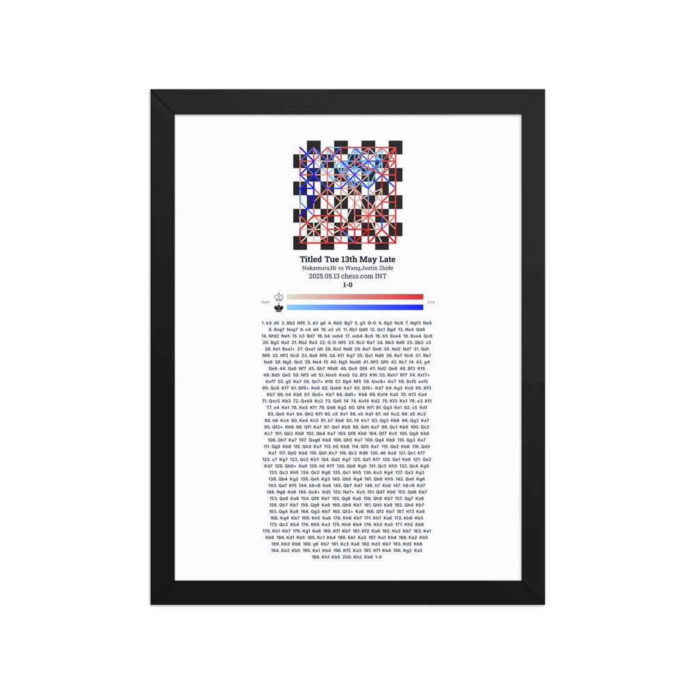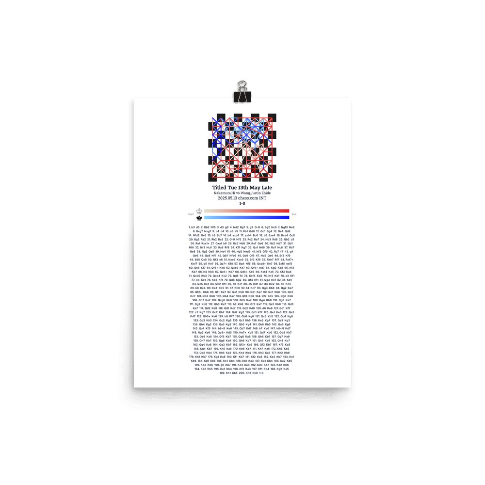 Museum-quality poster on thick, durable matte paper. A sharp, clean look for any chess visualisation.