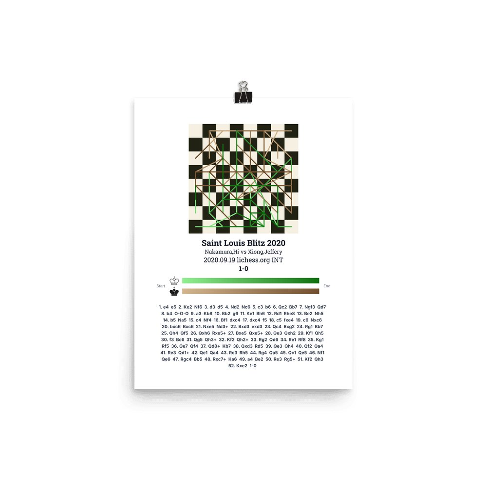 Museum-quality poster on thick, durable matte paper. A sharp, clean look for any chess visualisation.