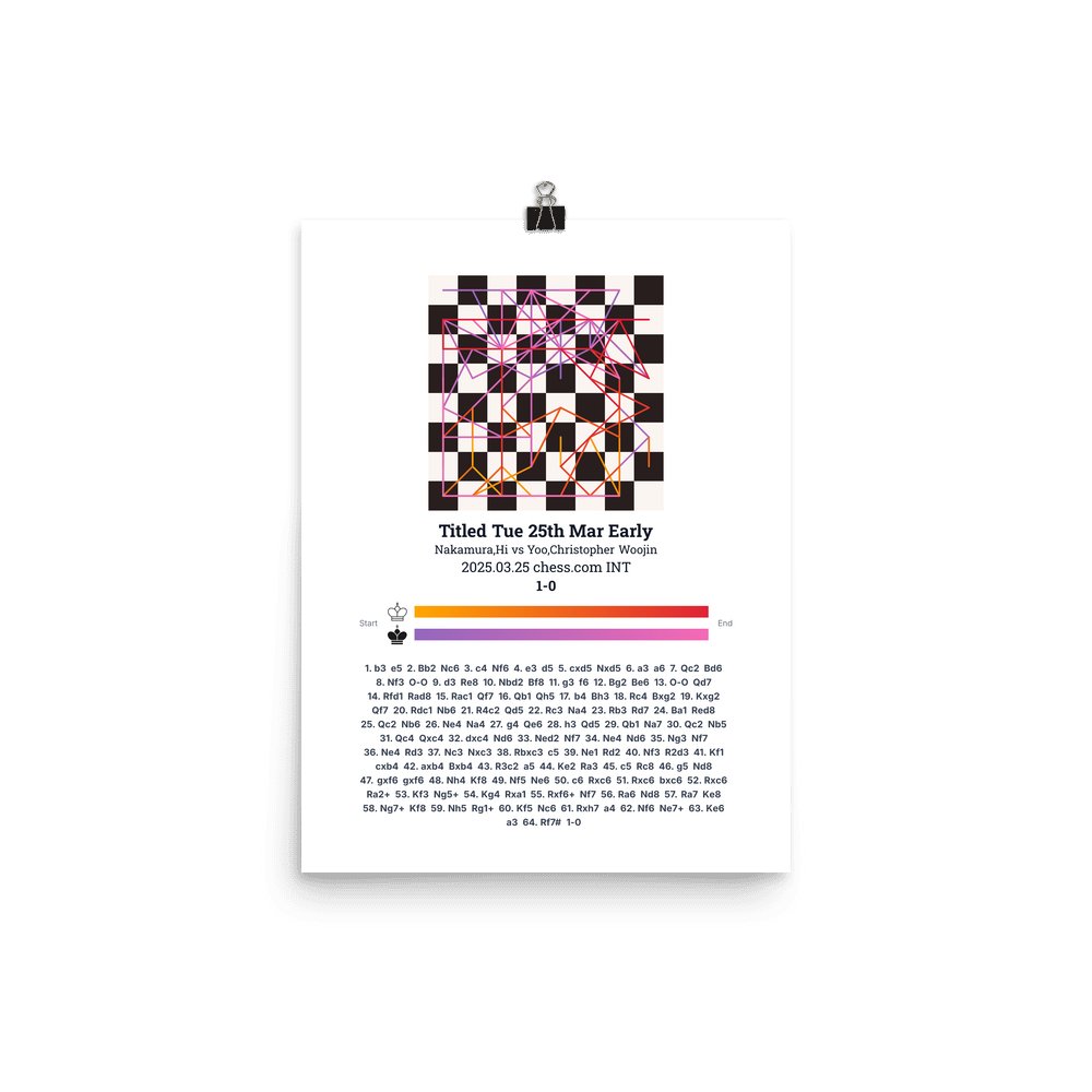 Museum-quality poster on thick, durable matte paper. A sharp, clean look for any chess visualisation.