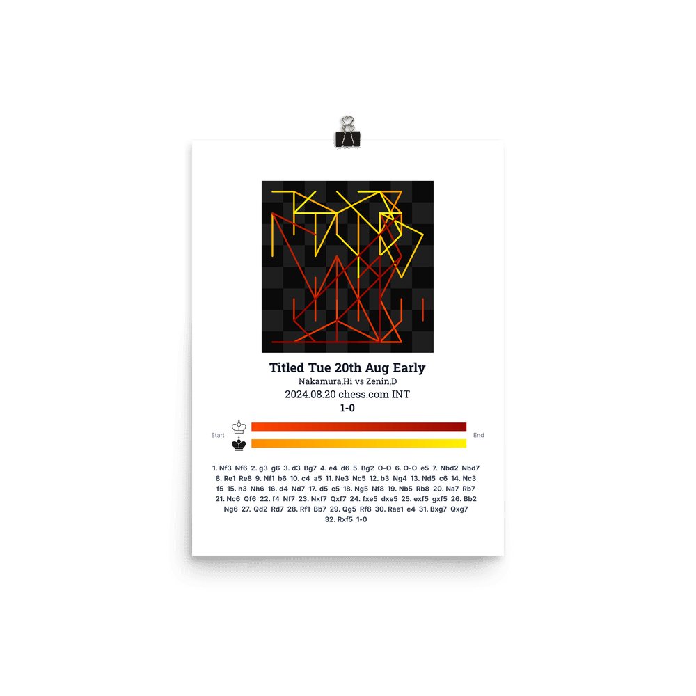 Museum-quality poster on thick, durable matte paper. A sharp, clean look for any chess visualisation.