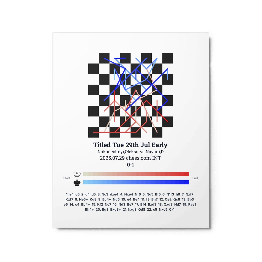 Museum-quality poster on thick, durable matte paper. A sharp, clean look for any chess visualisation.