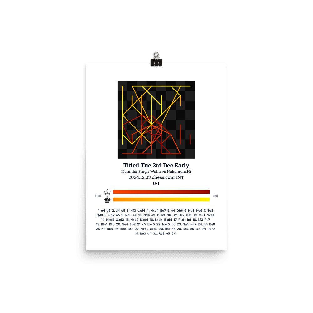 Museum-quality poster on thick, durable matte paper. A sharp, clean look for any chess visualisation.