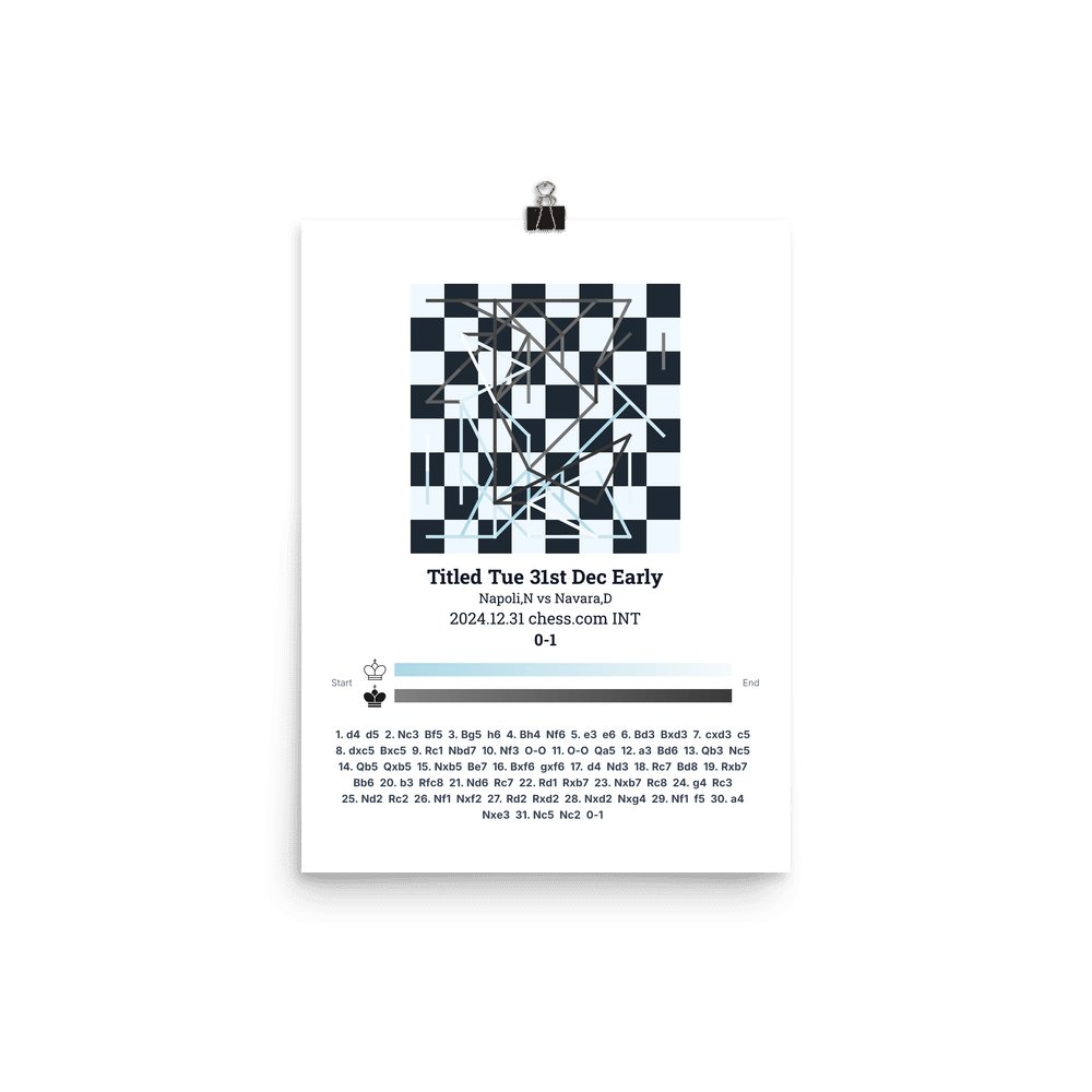 Museum-quality poster on thick, durable matte paper. A sharp, clean look for any chess visualisation.