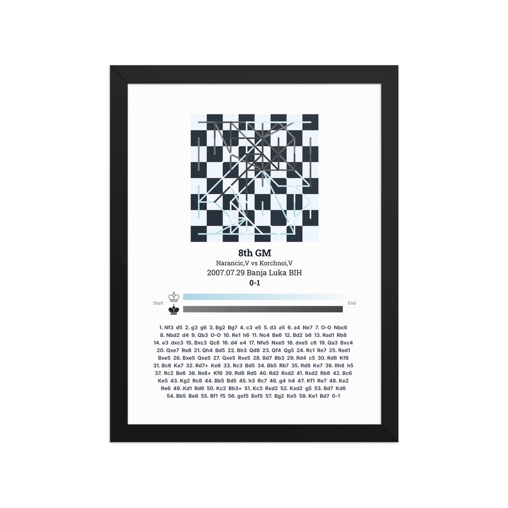 Museum-quality poster on thick, durable matte paper. A sharp, clean look for any chess visualisation.
