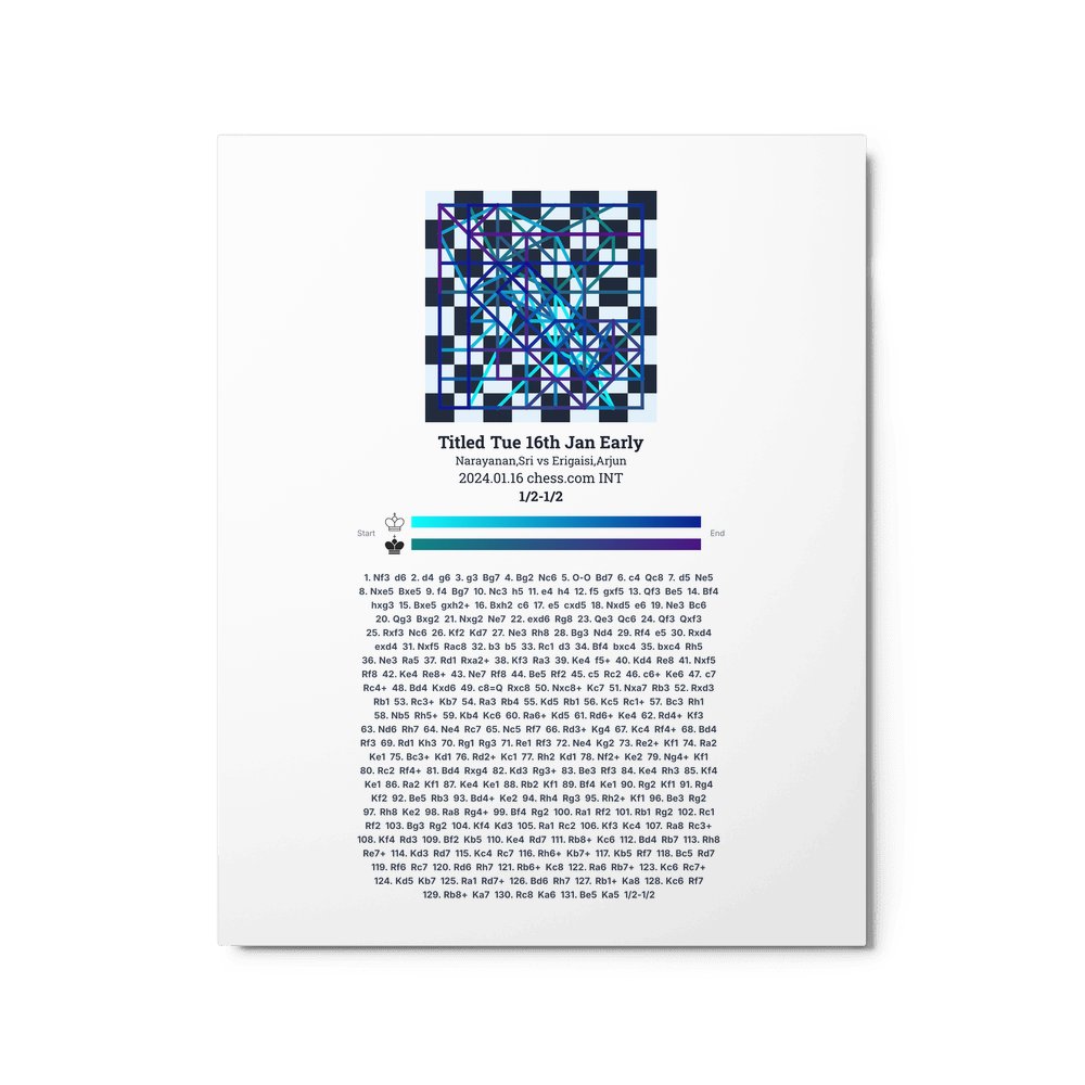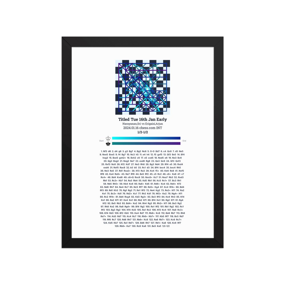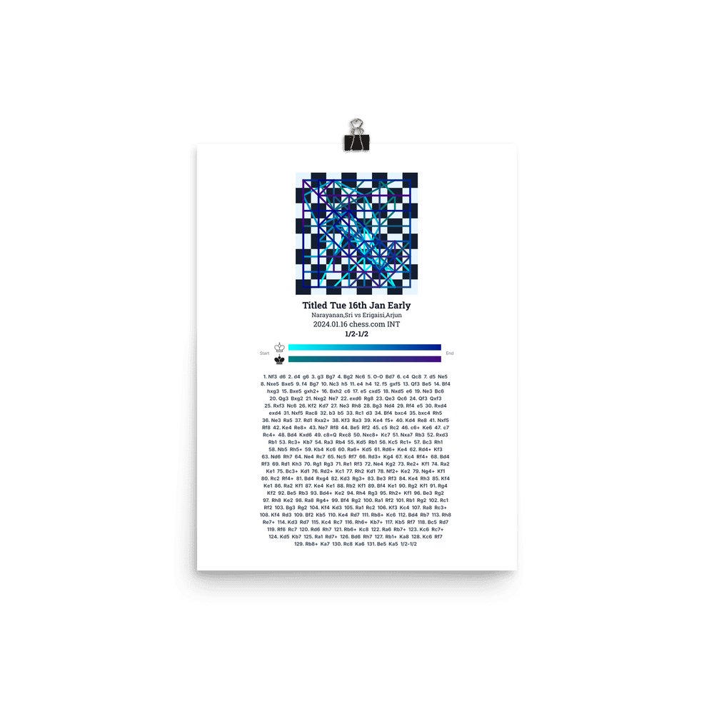 Museum-quality poster on thick, durable matte paper. A sharp, clean look for any chess visualisation.