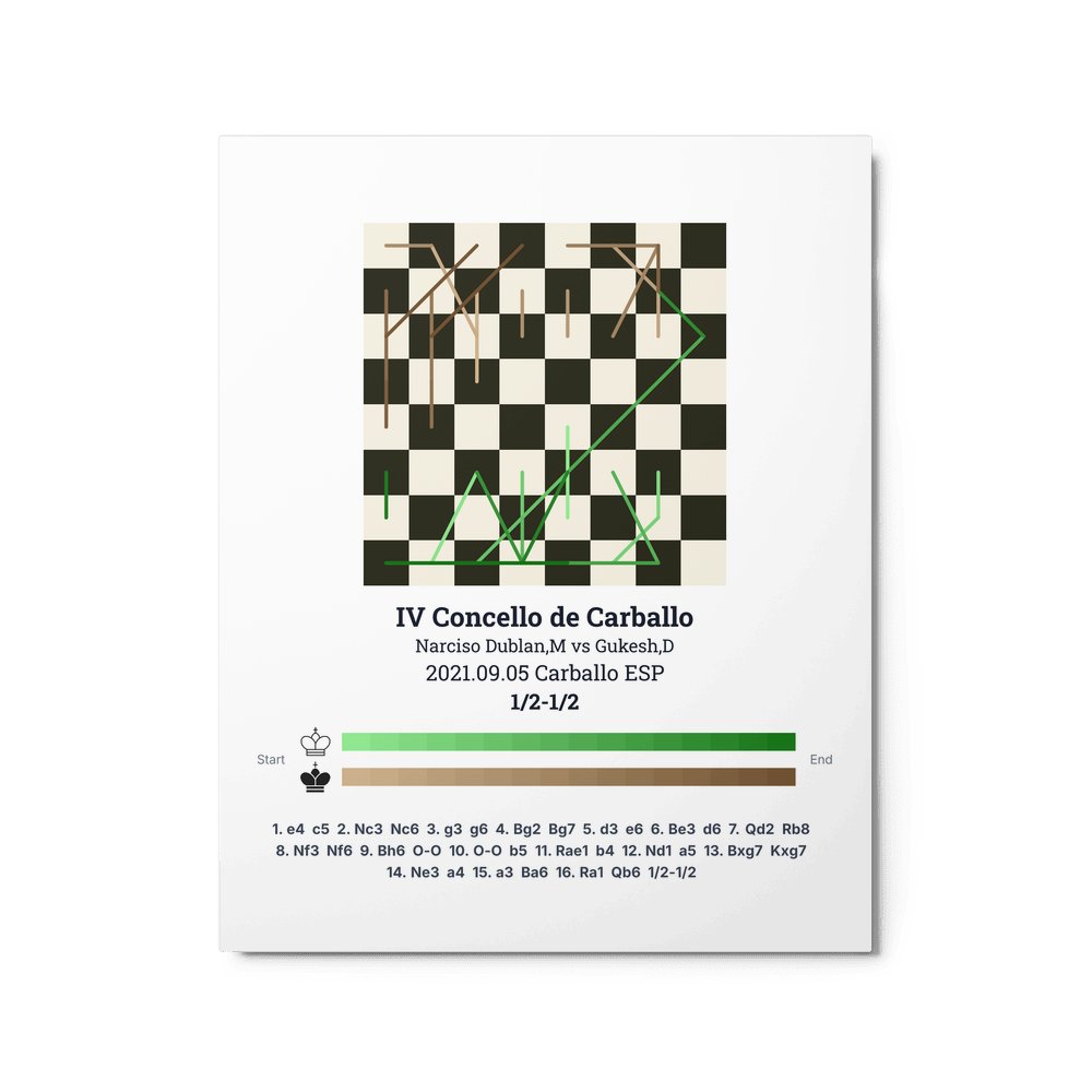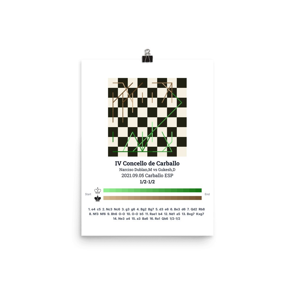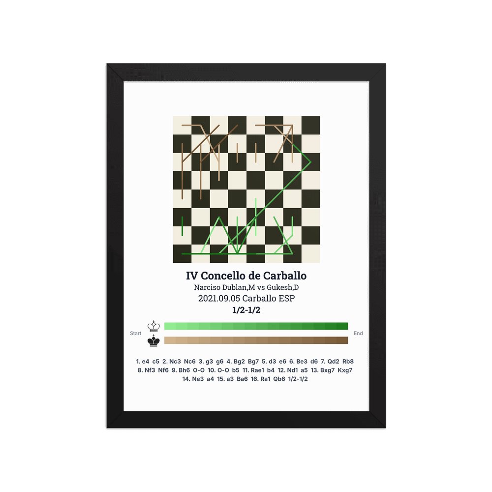 Museum-quality poster on thick, durable matte paper. A sharp, clean look for any chess visualisation.