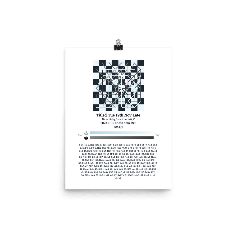 Museum-quality poster on thick, durable matte paper. A sharp, clean look for any chess visualisation.