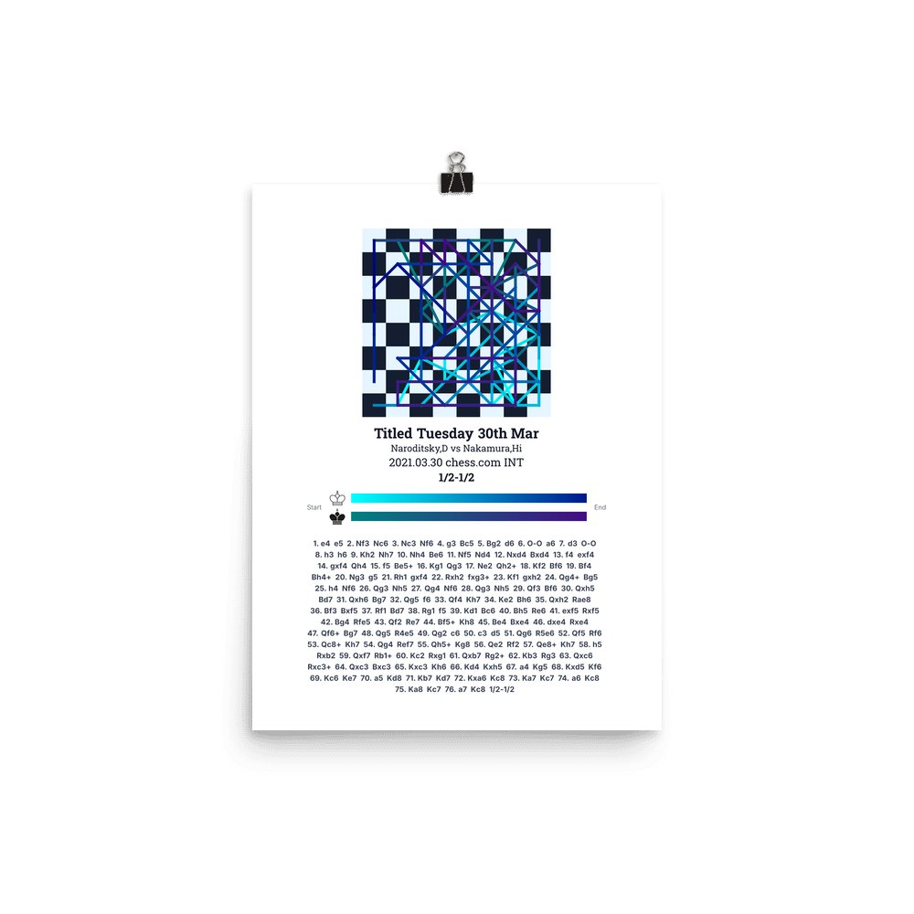 Museum-quality poster on thick, durable matte paper. A sharp, clean look for any chess visualisation.