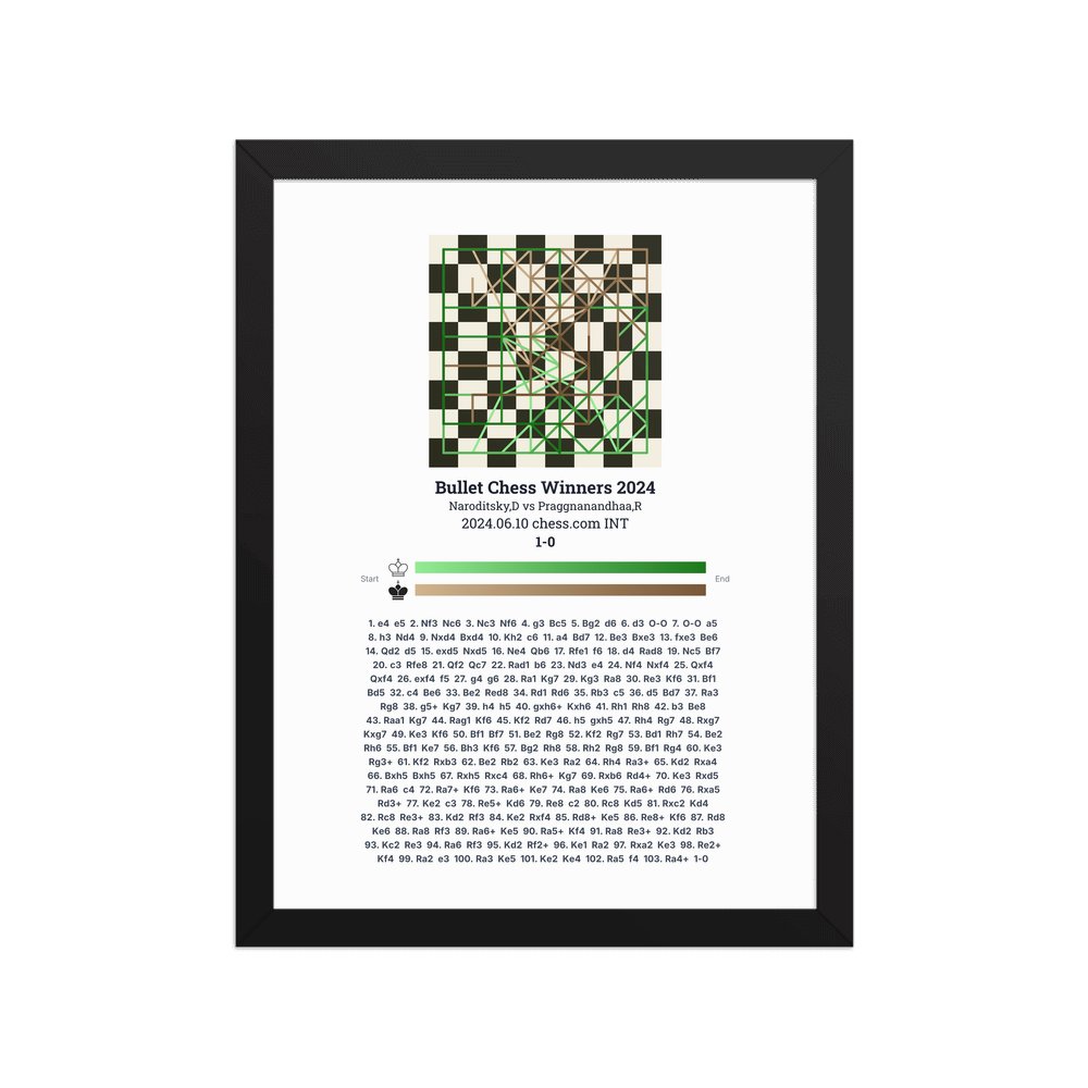 Museum-quality poster on thick, durable matte paper. A sharp, clean look for any chess visualisation.
