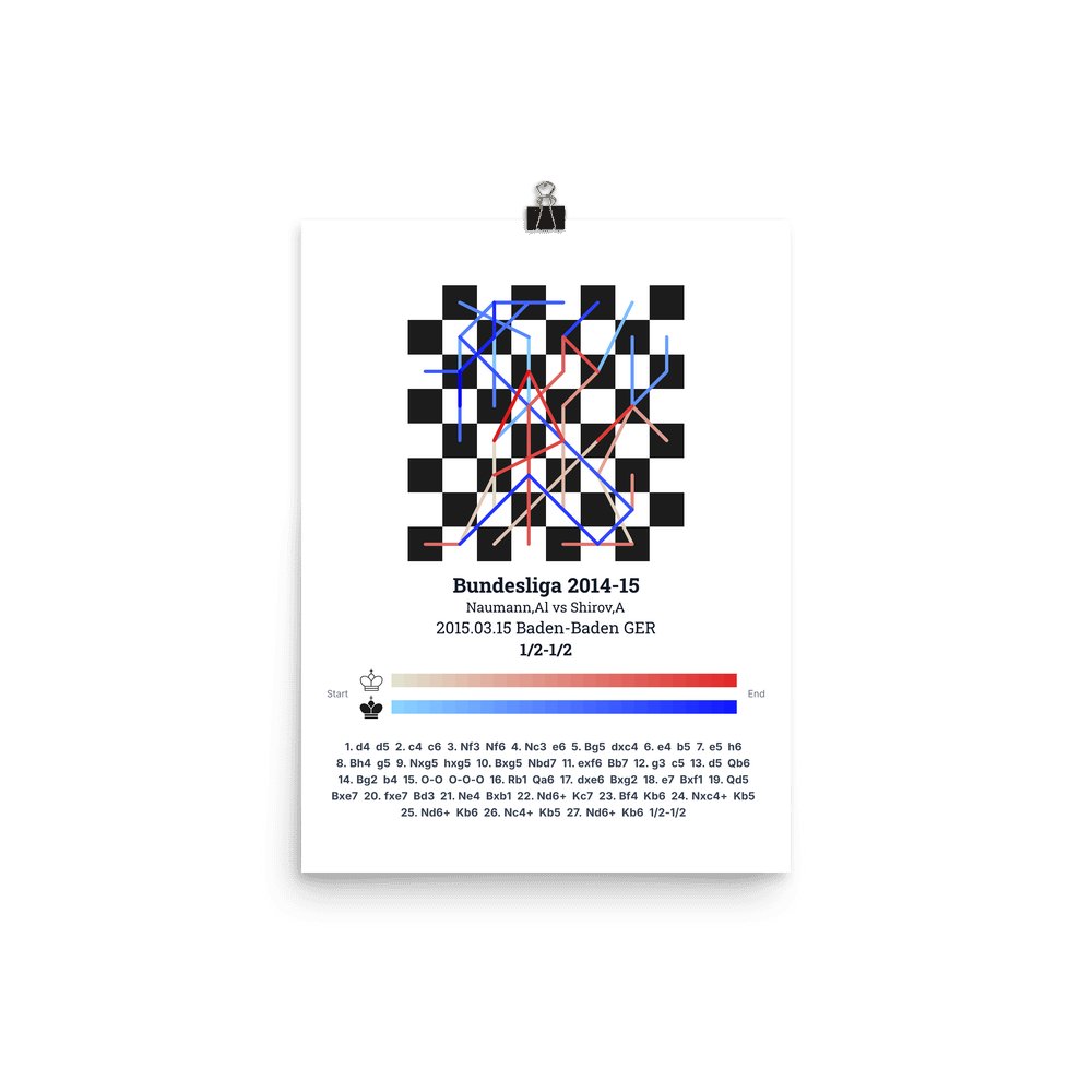 Museum-quality poster on thick, durable matte paper. A sharp, clean look for any chess visualisation.