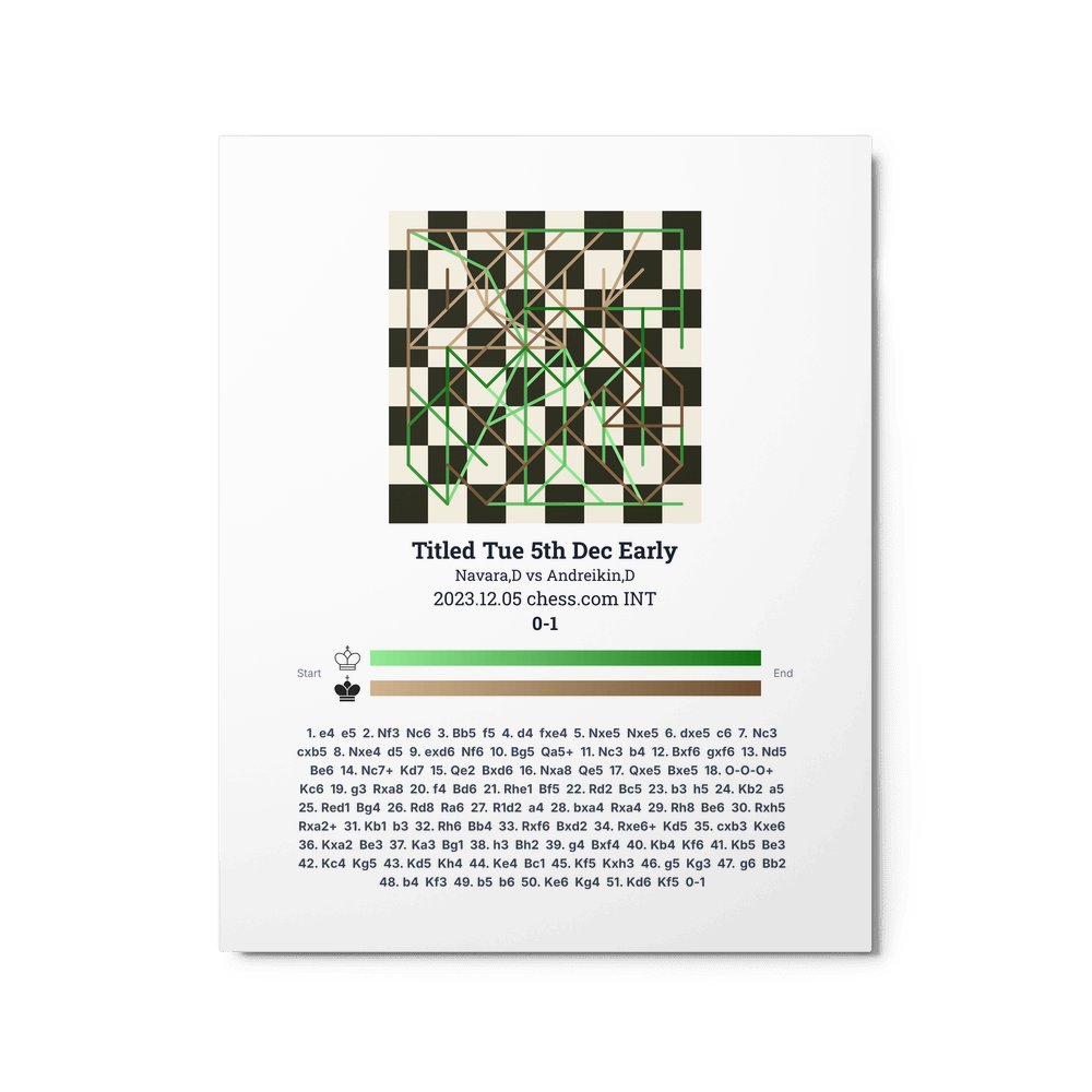 Museum-quality poster on thick, durable matte paper. A sharp, clean look for any chess visualisation.