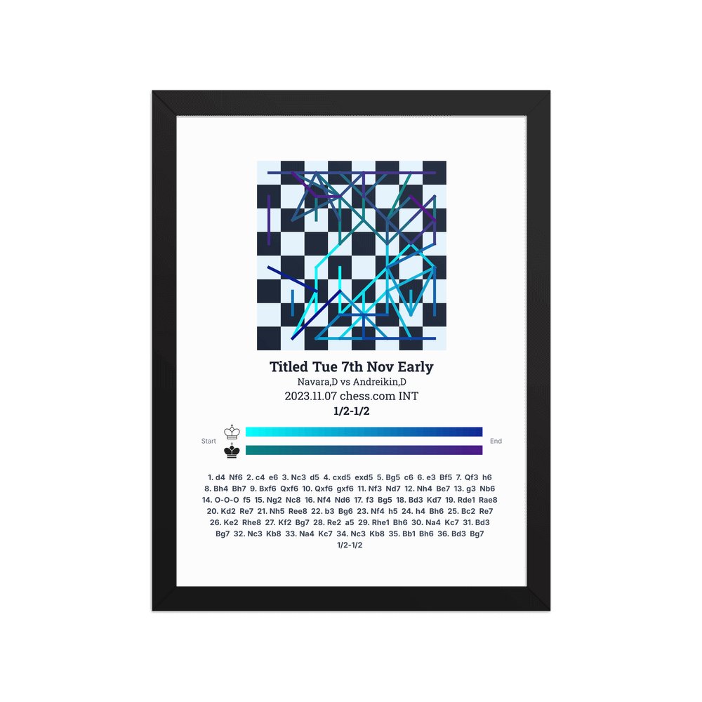 Museum-quality poster on thick, durable matte paper. A sharp, clean look for any chess visualisation.