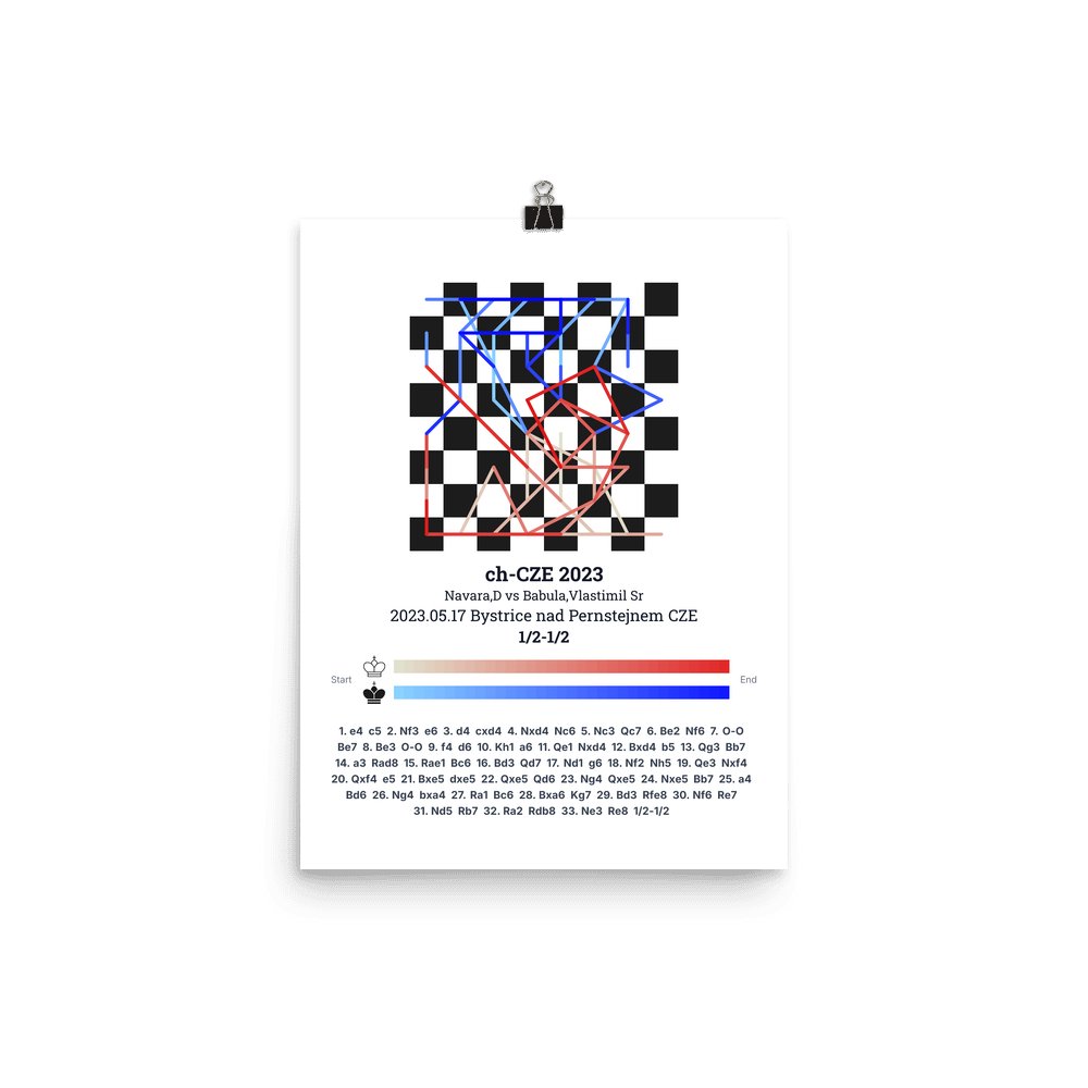 Museum-quality poster on thick, durable matte paper. A sharp, clean look for any chess visualisation.