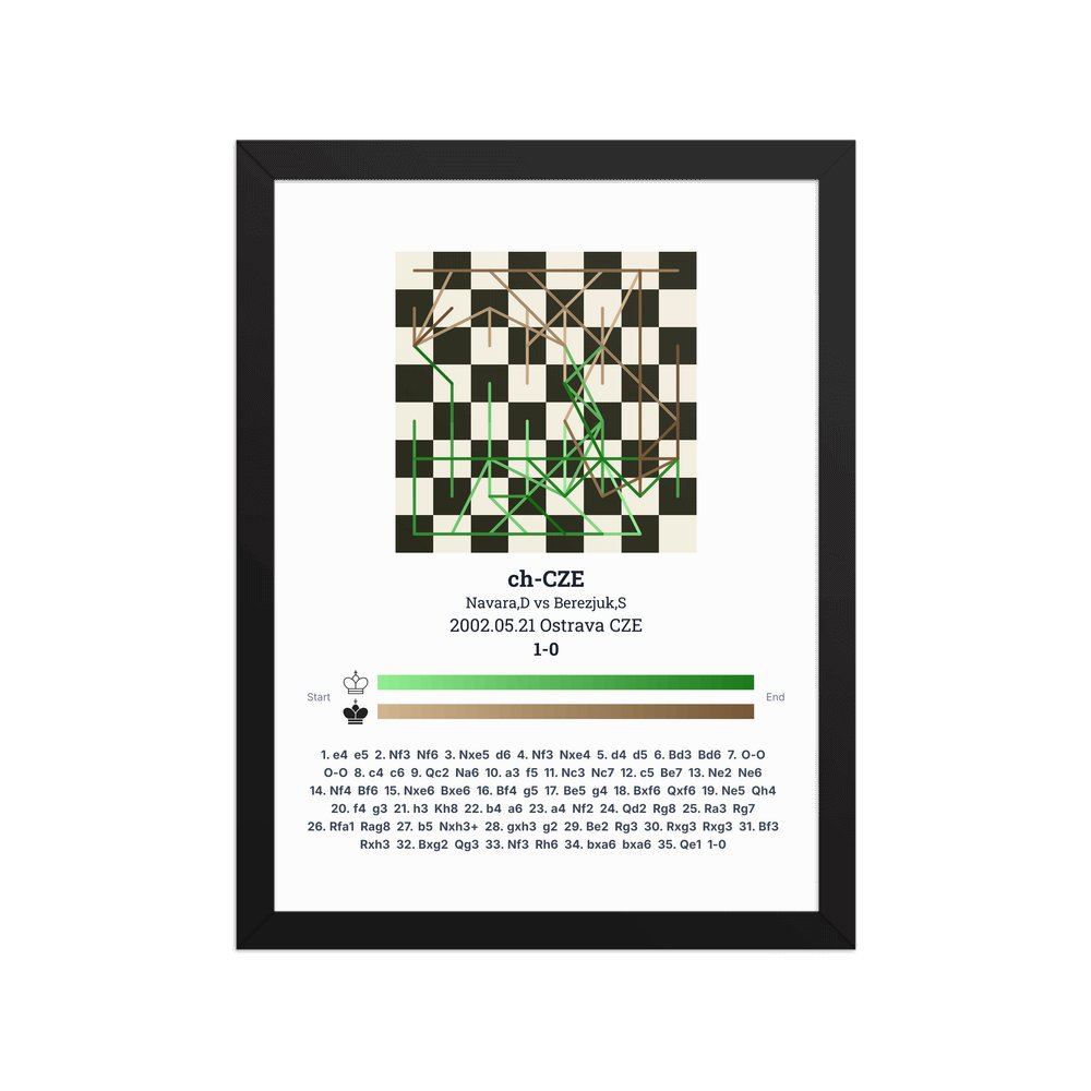 Museum-quality poster on thick, durable matte paper. A sharp, clean look for any chess visualisation.