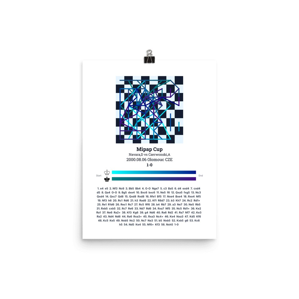 Museum-quality poster on thick, durable matte paper. A sharp, clean look for any chess visualisation.