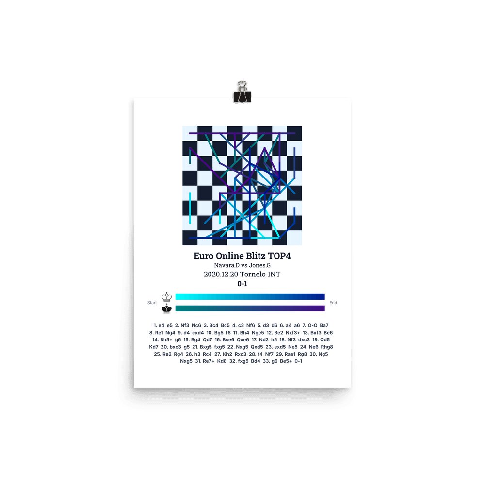 Museum-quality poster on thick, durable matte paper. A sharp, clean look for any chess visualisation.