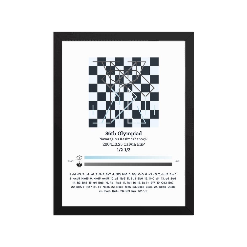Museum-quality poster on thick, durable matte paper. A sharp, clean look for any chess visualisation.