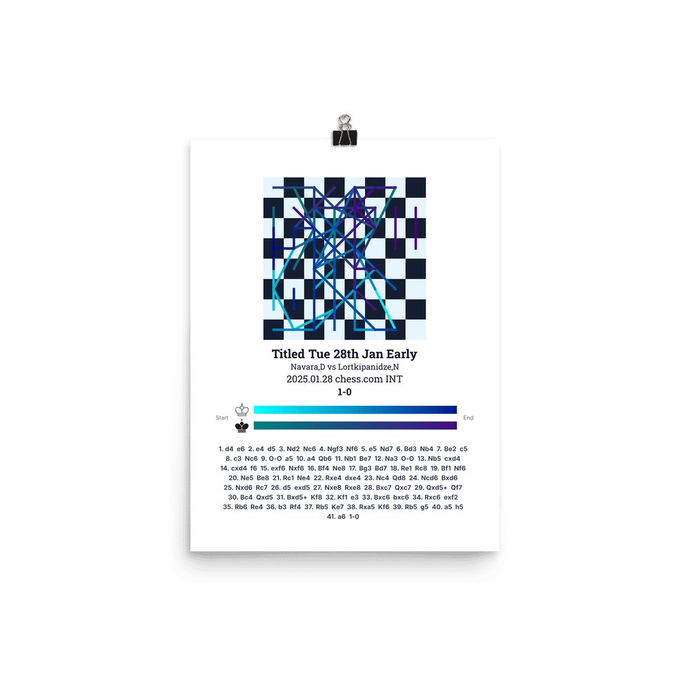 Museum-quality poster on thick, durable matte paper. A sharp, clean look for any chess visualisation.