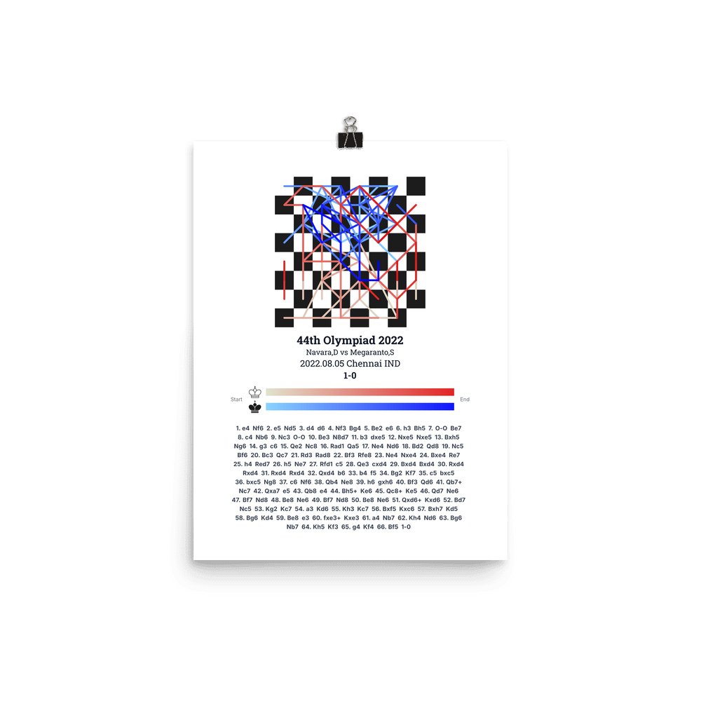 Museum-quality poster on thick, durable matte paper. A sharp, clean look for any chess visualisation.