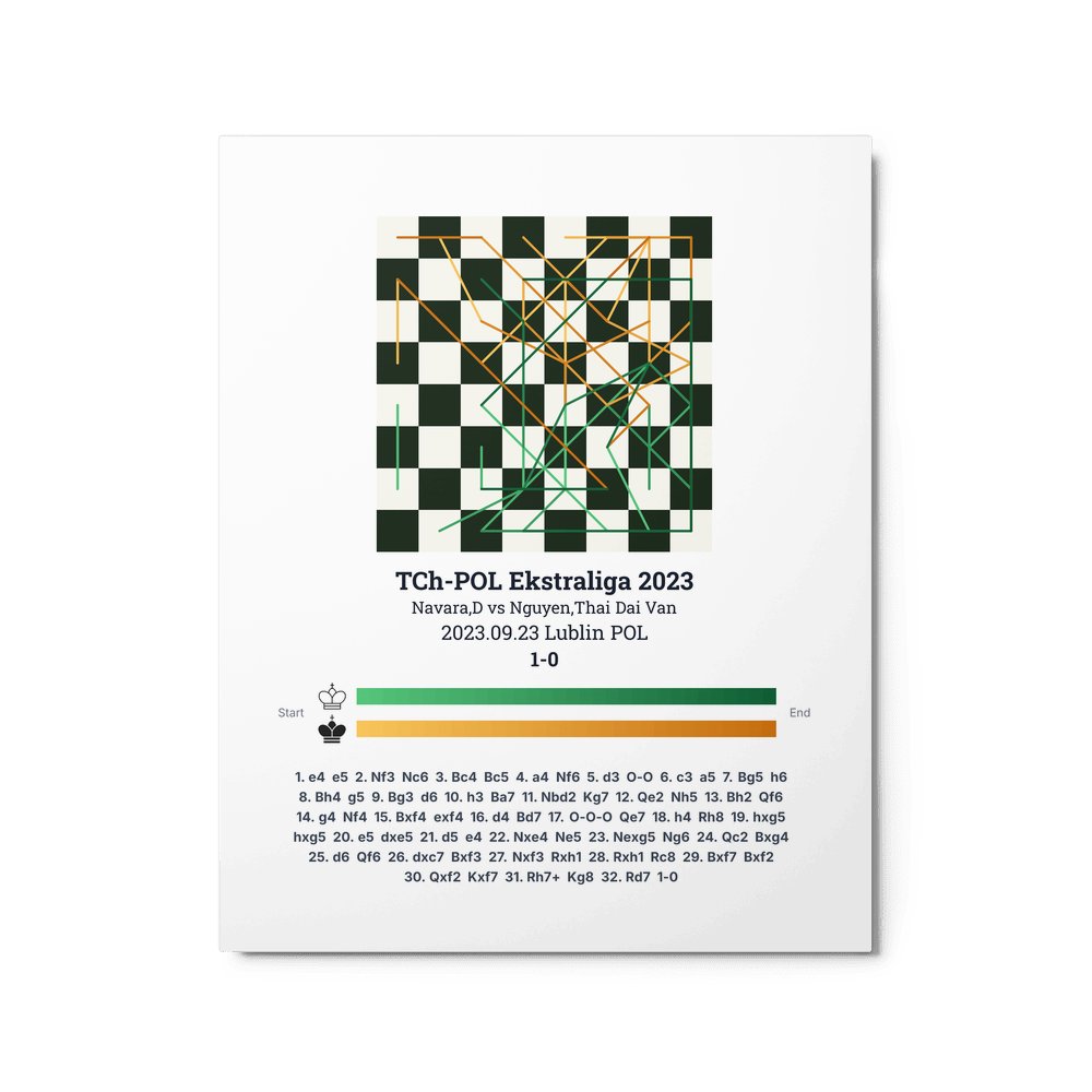 Museum-quality poster on thick, durable matte paper. A sharp, clean look for any chess visualisation.