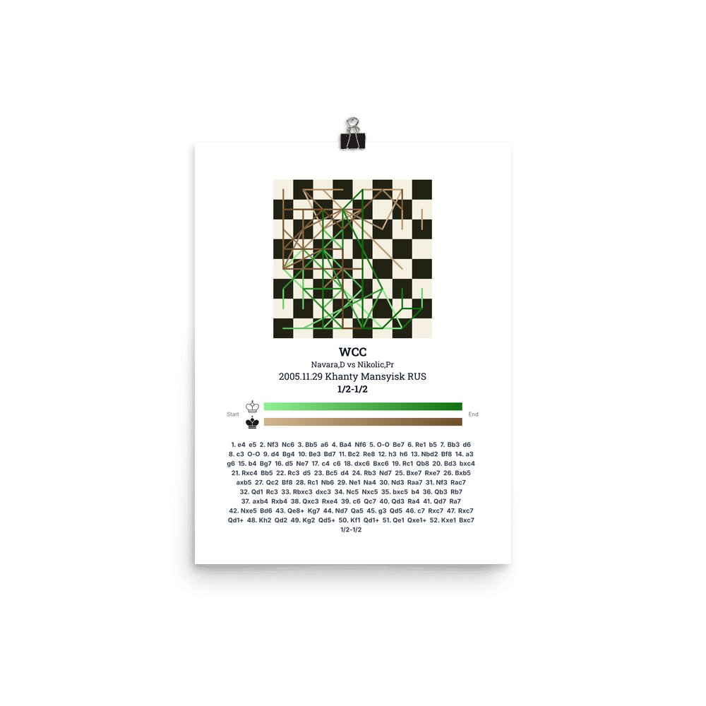 Museum-quality poster on thick, durable matte paper. A sharp, clean look for any chess visualisation.