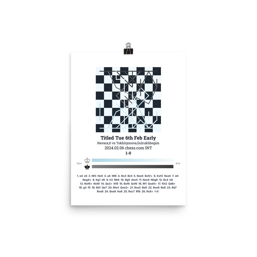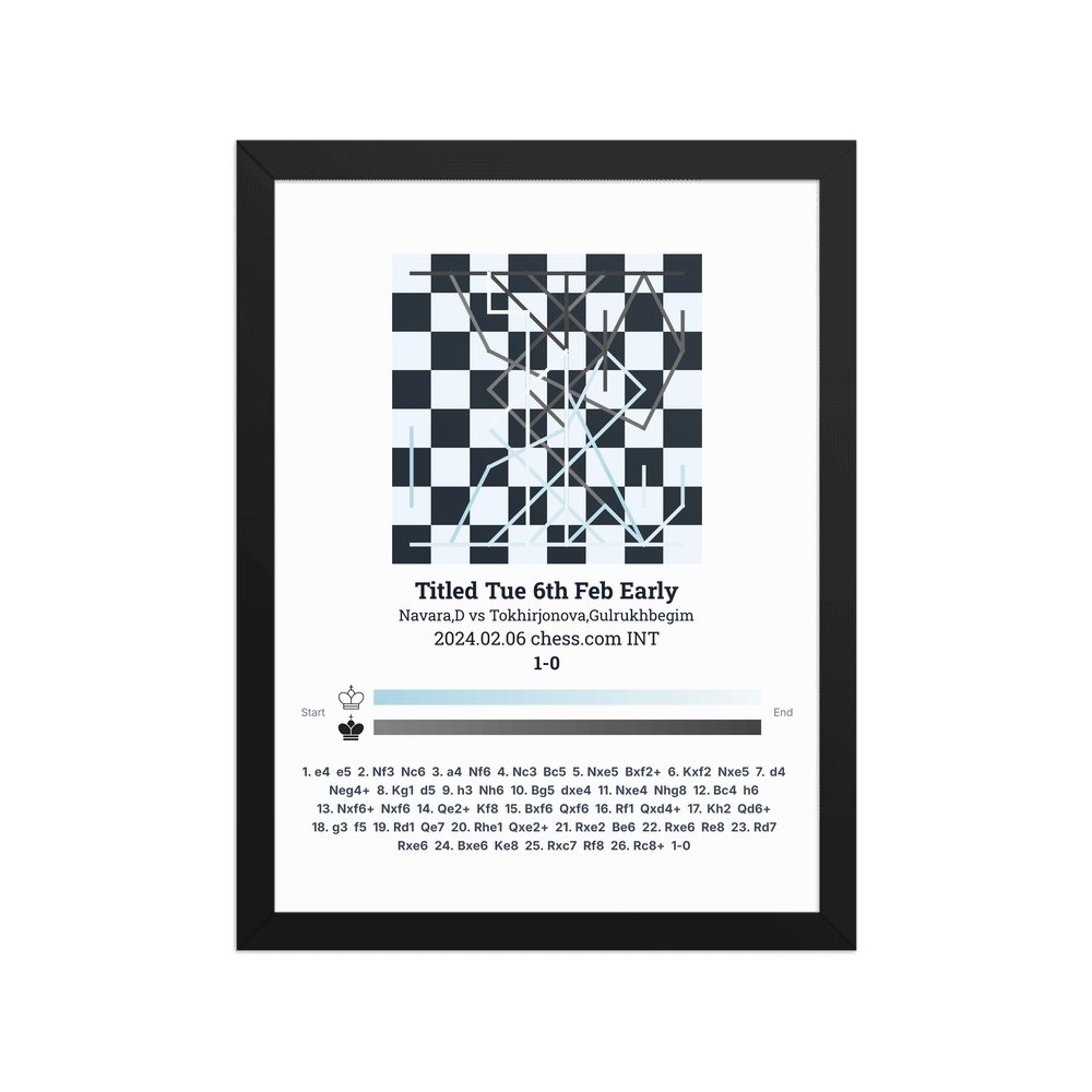 Museum-quality poster on thick, durable matte paper. A sharp, clean look for any chess visualisation.