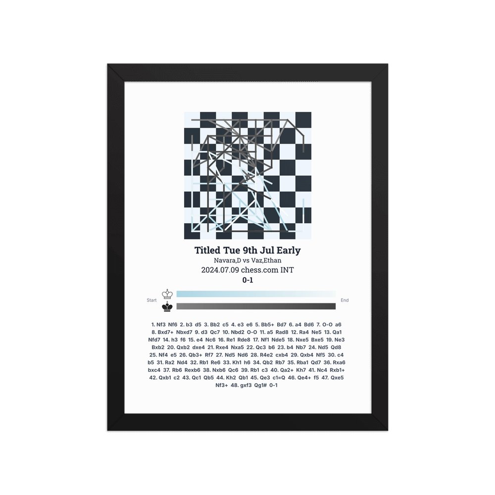 Museum-quality poster on thick, durable matte paper. A sharp, clean look for any chess visualisation.