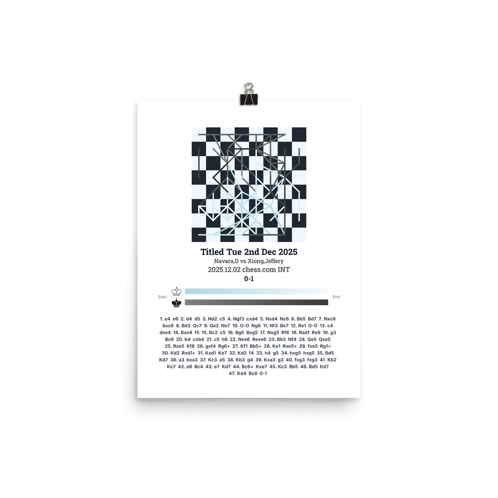 Museum-quality poster on thick, durable matte paper. A sharp, clean look for any chess visualisation.