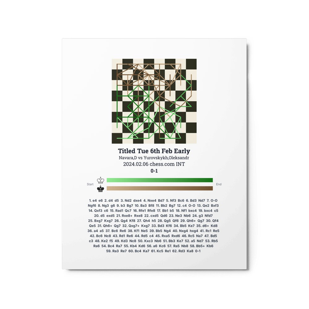 Museum-quality poster on thick, durable matte paper. A sharp, clean look for any chess visualisation.