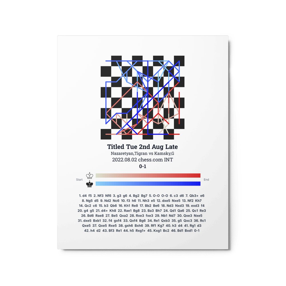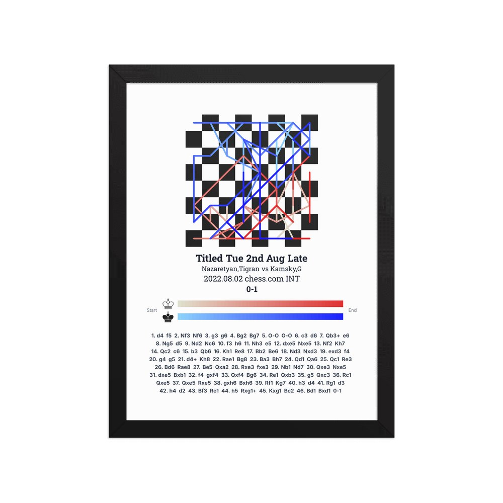 Museum-quality poster on thick, durable matte paper. A sharp, clean look for any chess visualisation.