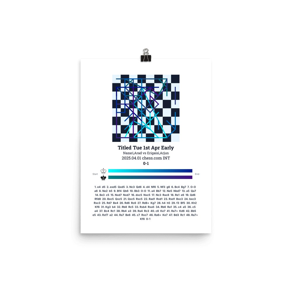 Museum-quality poster on thick, durable matte paper. A sharp, clean look for any chess visualisation.