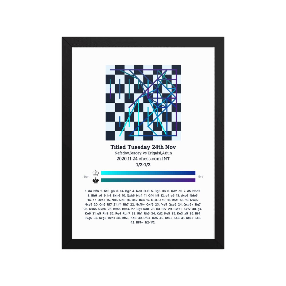 Museum-quality poster on thick, durable matte paper. A sharp, clean look for any chess visualisation.
