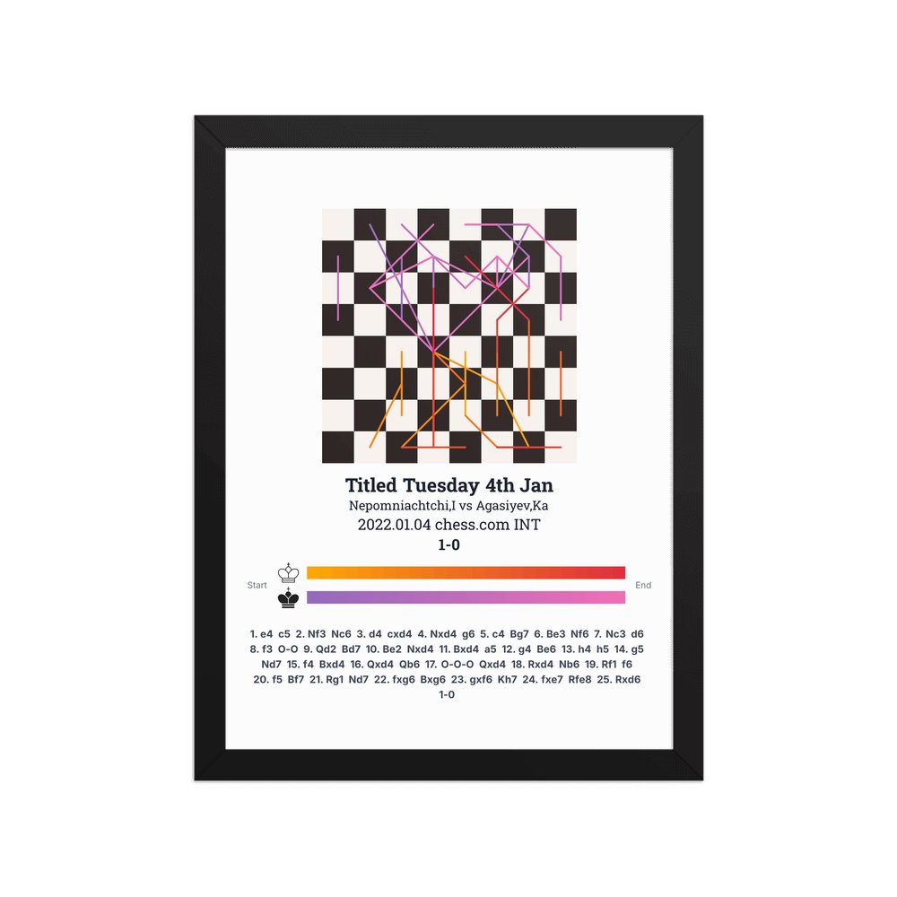 Museum-quality poster on thick, durable matte paper. A sharp, clean look for any chess visualisation.