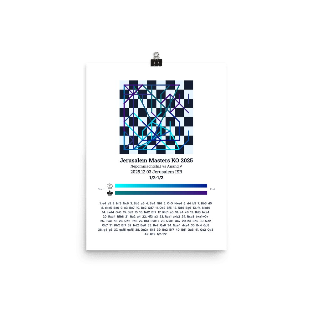 Museum-quality poster on thick, durable matte paper. A sharp, clean look for any chess visualisation.