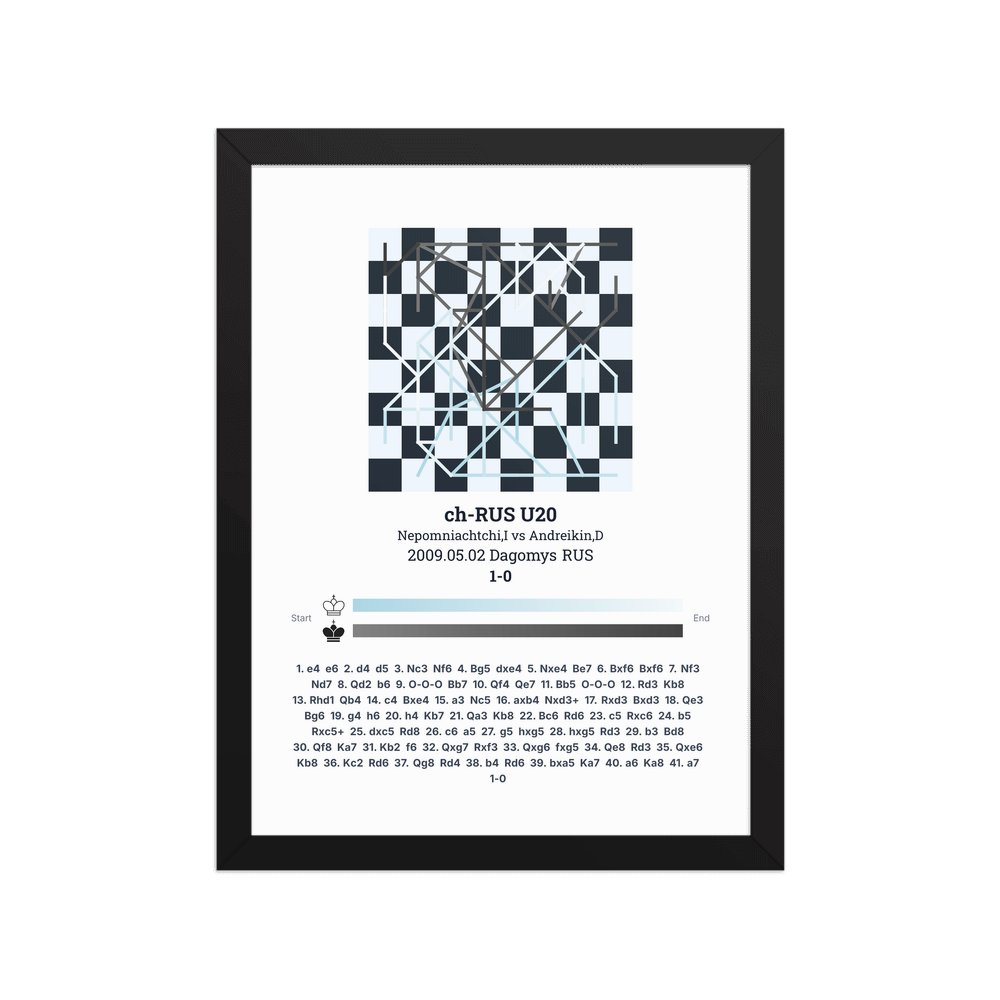 Museum-quality poster on thick, durable matte paper. A sharp, clean look for any chess visualisation.