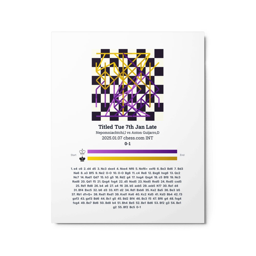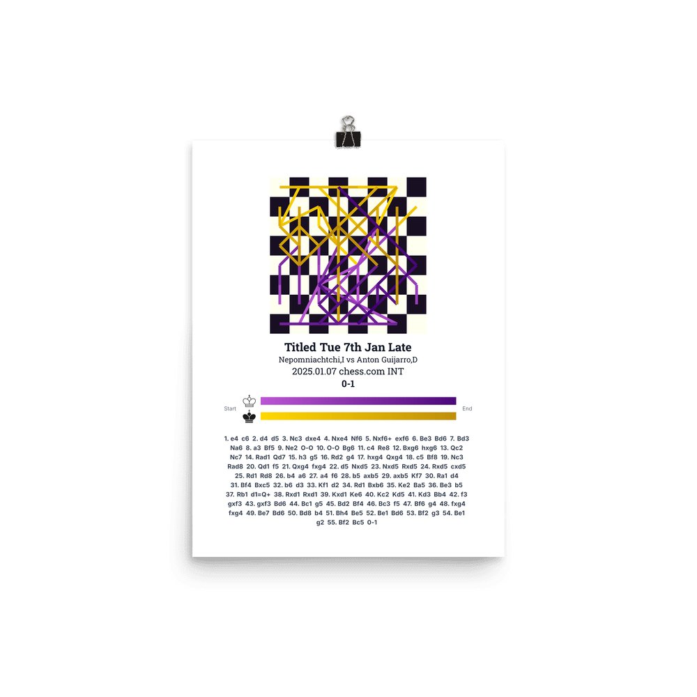 Museum-quality poster on thick, durable matte paper. A sharp, clean look for any chess visualisation.
