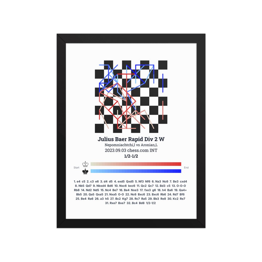 Museum-quality poster on thick, durable matte paper. A sharp, clean look for any chess visualisation.