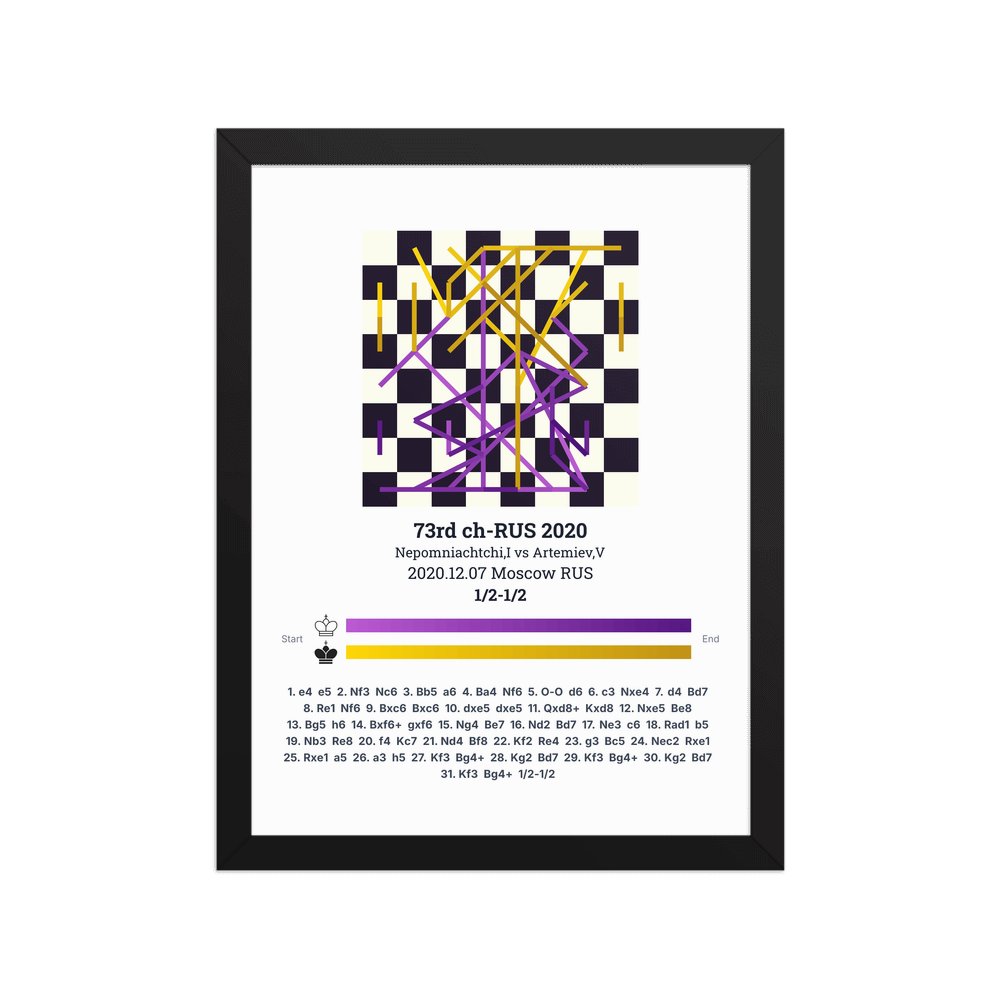 Museum-quality poster on thick, durable matte paper. A sharp, clean look for any chess visualisation.