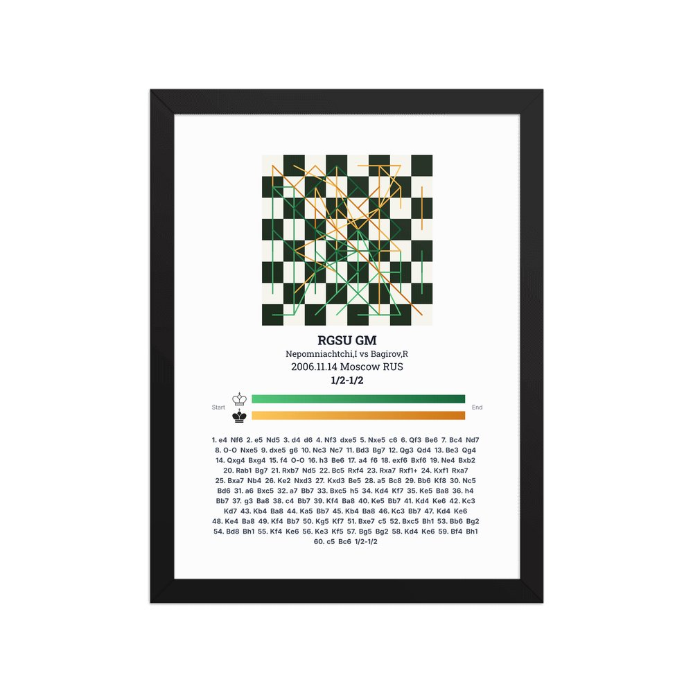 Museum-quality poster on thick, durable matte paper. A sharp, clean look for any chess visualisation.