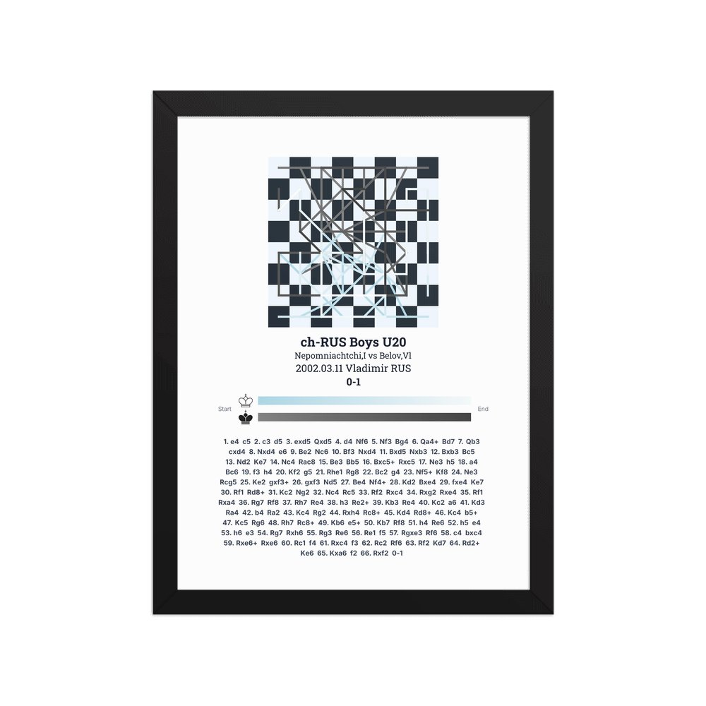 Museum-quality poster on thick, durable matte paper. A sharp, clean look for any chess visualisation.