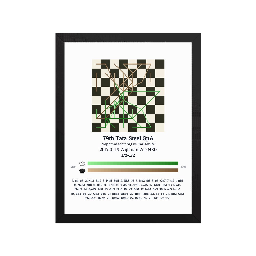 Museum-quality poster on thick, durable matte paper. A sharp, clean look for any chess visualisation.