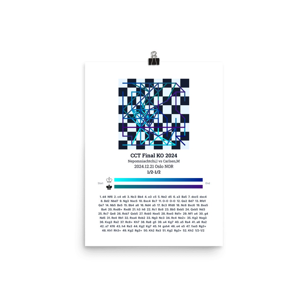 Museum-quality poster on thick, durable matte paper. A sharp, clean look for any chess visualisation.