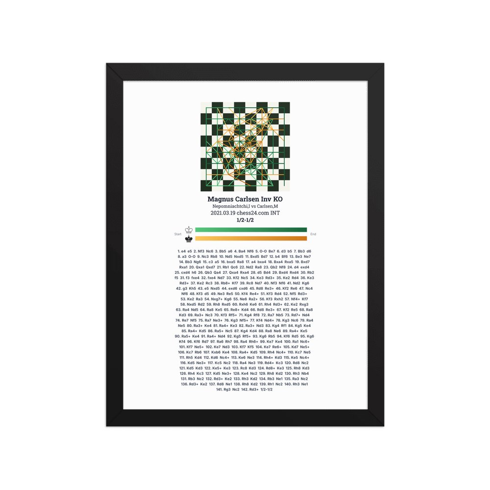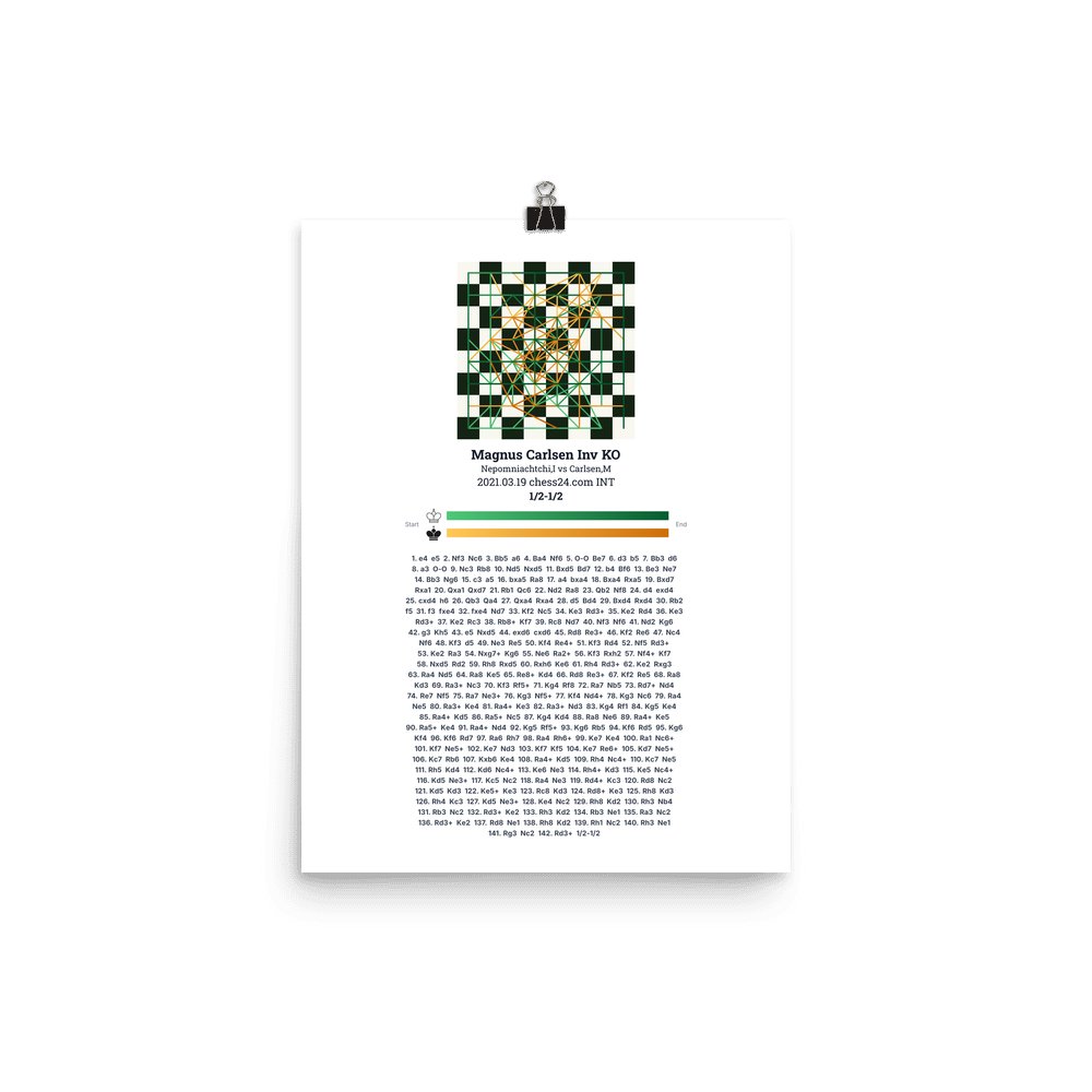 Museum-quality poster on thick, durable matte paper. A sharp, clean look for any chess visualisation.