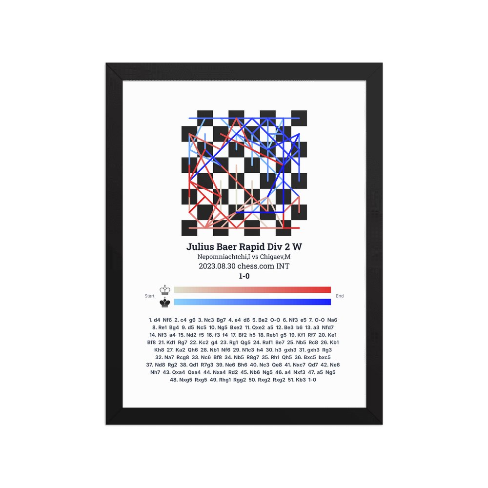Museum-quality poster on thick, durable matte paper. A sharp, clean look for any chess visualisation.