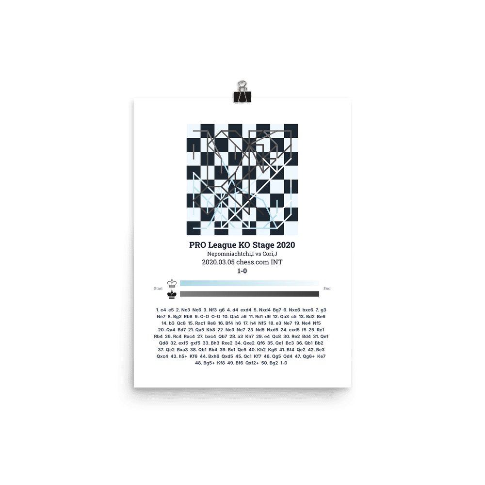 Museum-quality poster on thick, durable matte paper. A sharp, clean look for any chess visualisation.