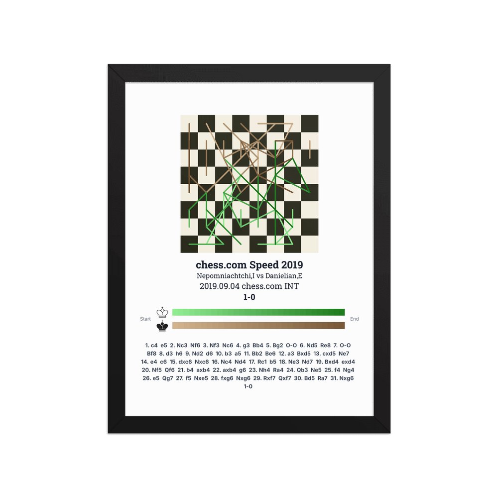Museum-quality poster on thick, durable matte paper. A sharp, clean look for any chess visualisation.