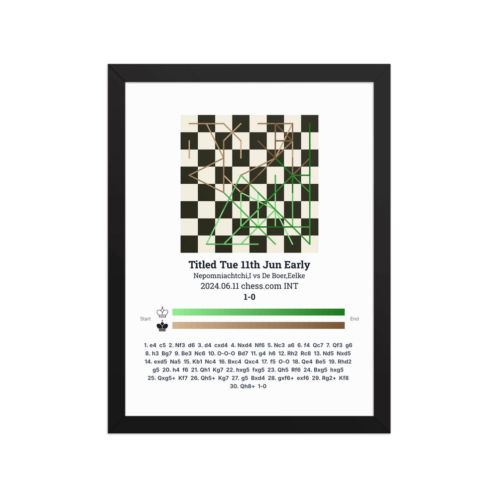 Museum-quality poster on thick, durable matte paper. A sharp, clean look for any chess visualisation.